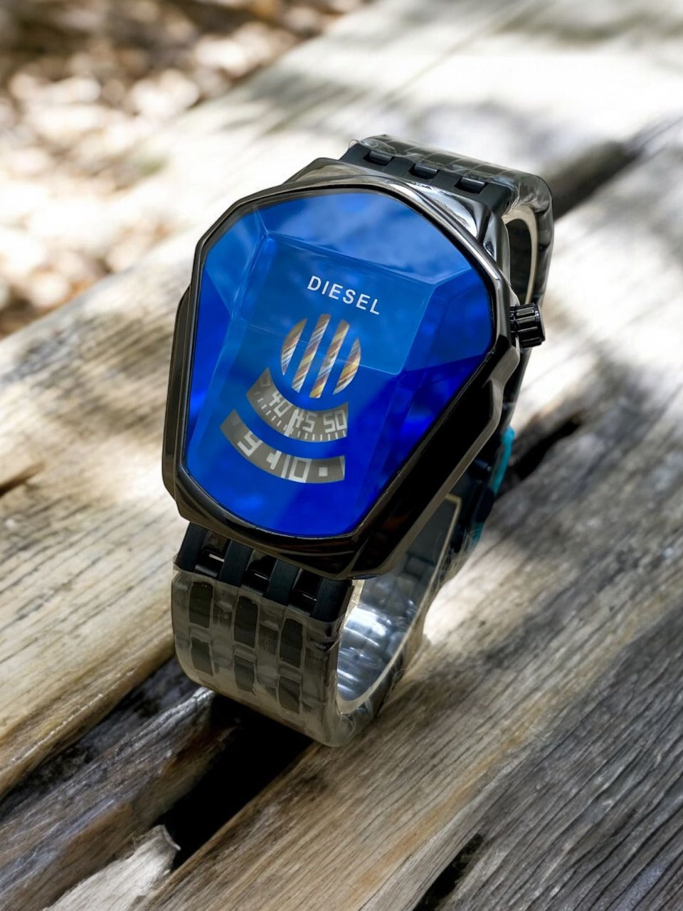 Diesel Iron Man – Black & Blue, Stainless Steel Chain and Back, Quartz Movement, Double Shaded Glass
